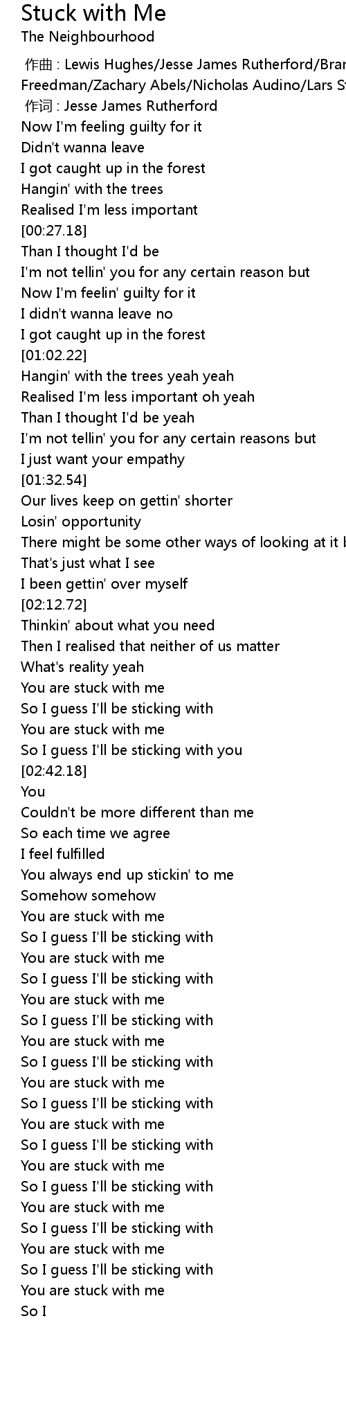 | [02:30.62] | You are stuck with me |