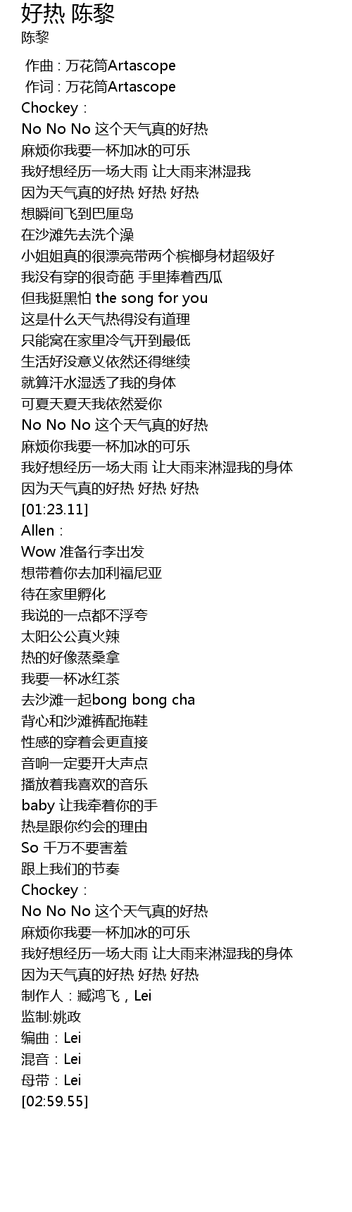 | [02:38.23] | 因为天气真的好热 好热 好热 |