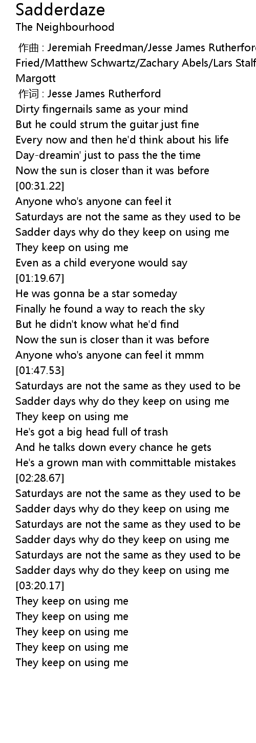 | [02:49.24] | Saturdays are not the same as they used to be |