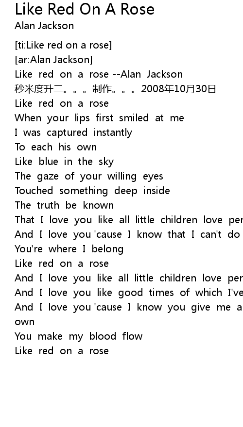 | [00:01.11] | Like red on a rose Alan Jackson |