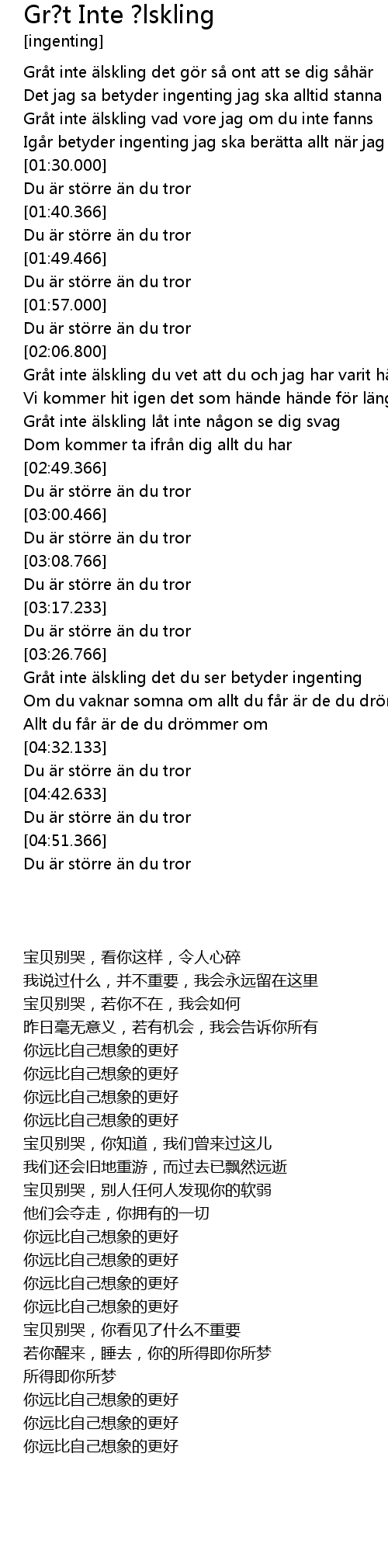 | [02:32.233] | Gr t inte lskling l t inte n gon se dig svag |