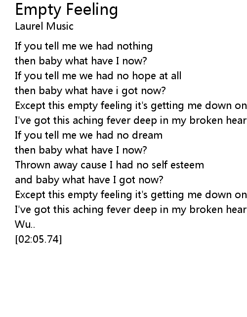 Except this empty feeling it's getting me down on my knees |