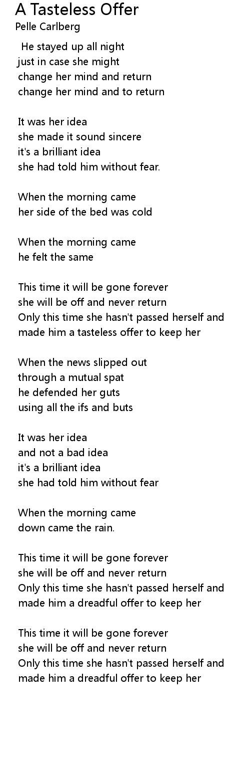 made him a tasteless offer to keep her |