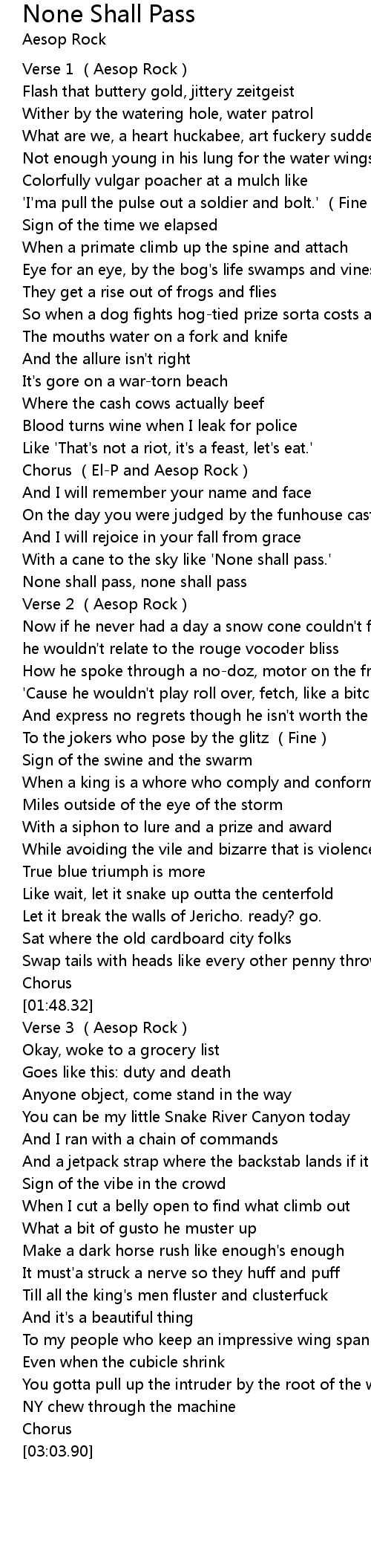 | [01:53.18] | Verse 3 Aesop Rock |