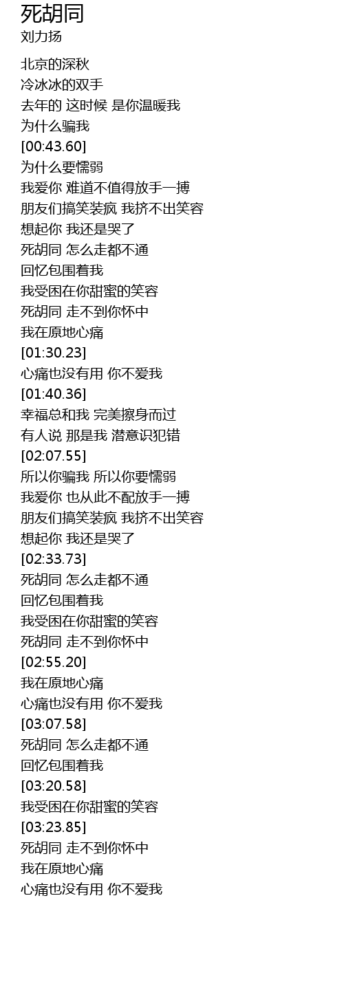 | [03:24.82] | 死胡同 走不到你怀中 |