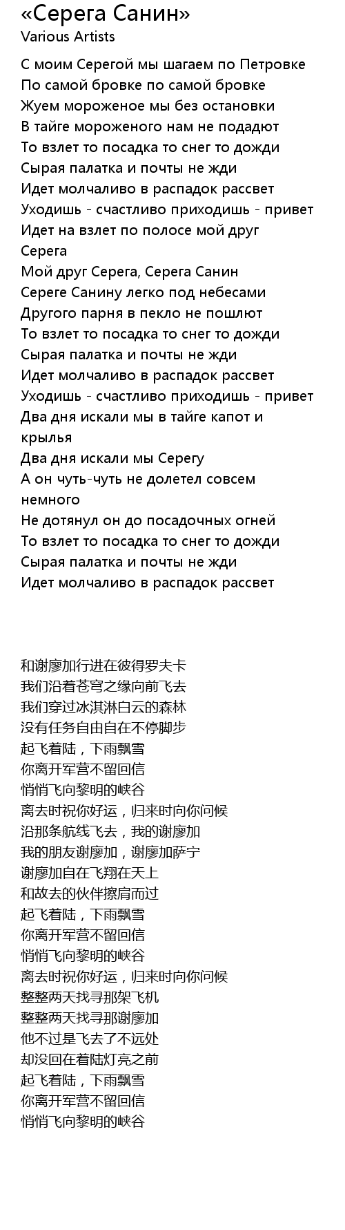 | [00:16.86] | 和谢廖加行进在彼得罗夫卡 |