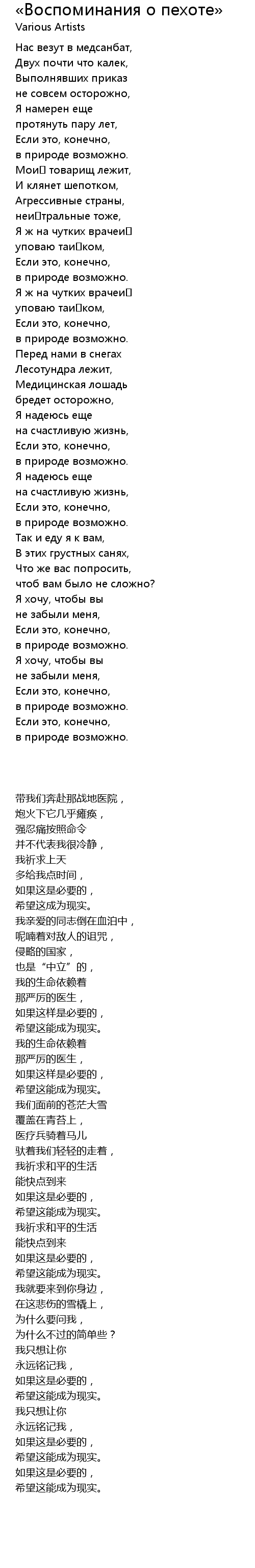 | 歌曲 | «Воспоминания о пехоте» |