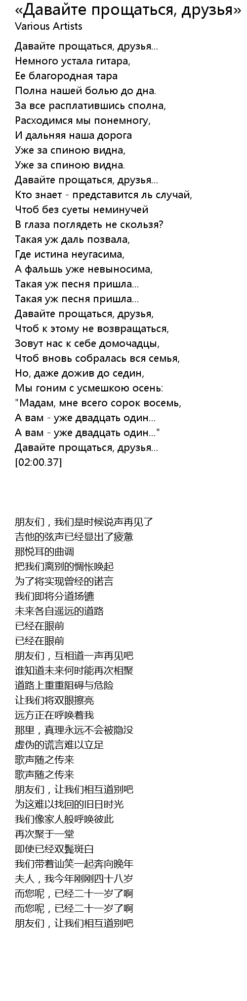 | [00:42.69] | Давайте прощаться, друзья... |