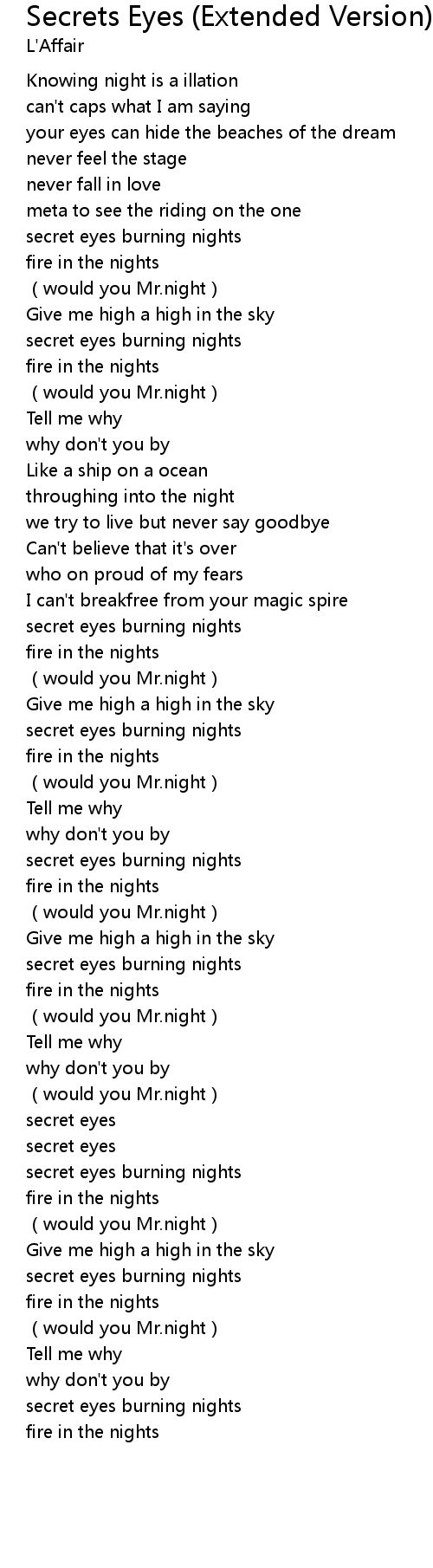 | 歌曲 | Secrets Eyes (Extended Version) |