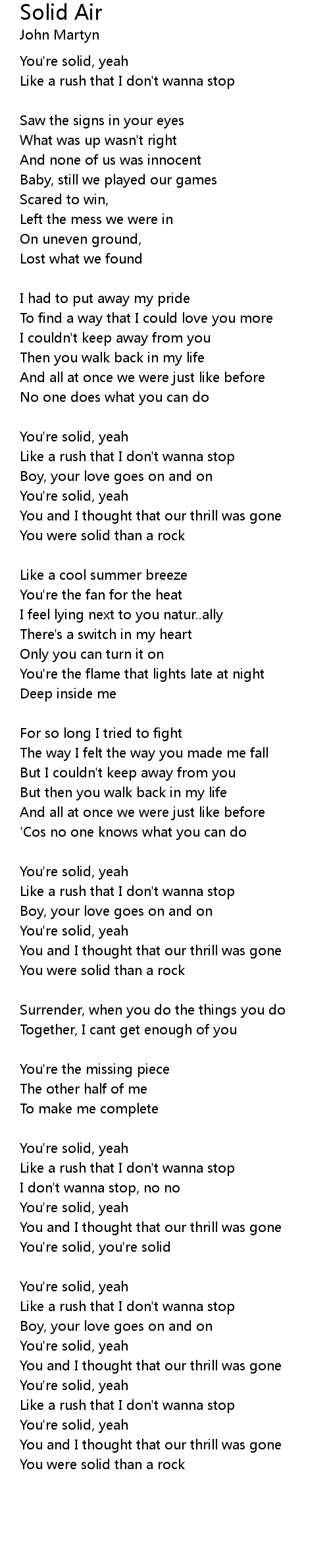 Solid Air 歌词