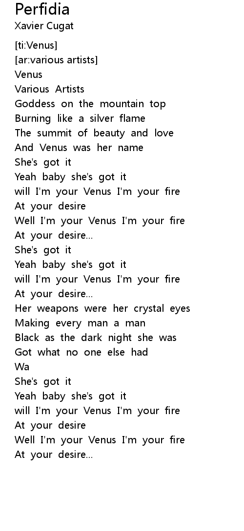 [02:30.46] will I'm your Venus I'm your fire
