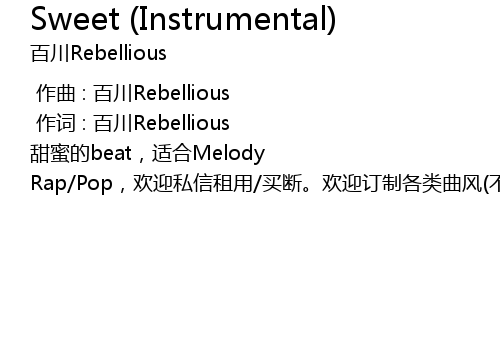 | [00:01.000] | 甜蜜的beat,适合Melody Rap/Pop,欢迎私信租用/买断。欢迎订制各类曲风(不仅限Hiphop)伴奏,承接歌曲后期混音。 |
