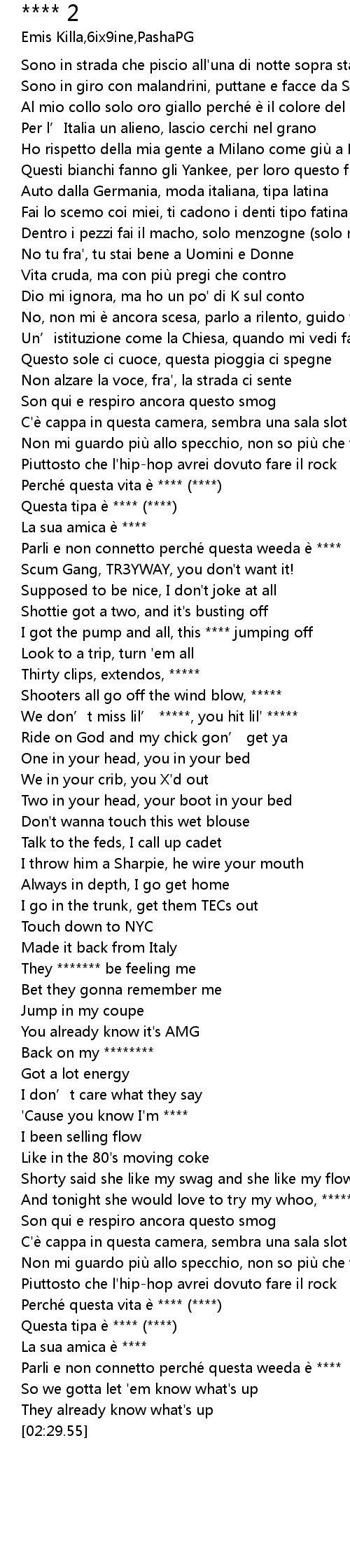 | [02:23.25] | Parli e non connetto perché questa weeda è **** |