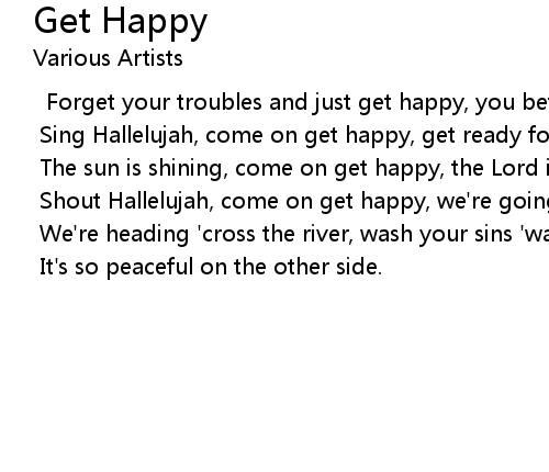 | Forget your troubles and just get happy, you better chase all your cares away. | |