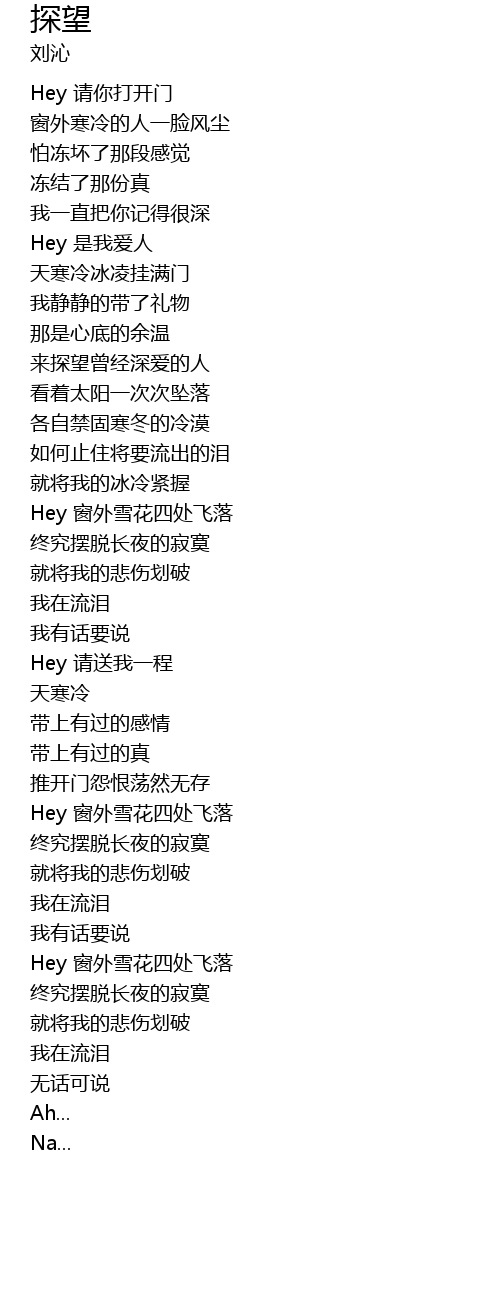 | [01:30.900] | Hey 窗外雪花四处飞落 |