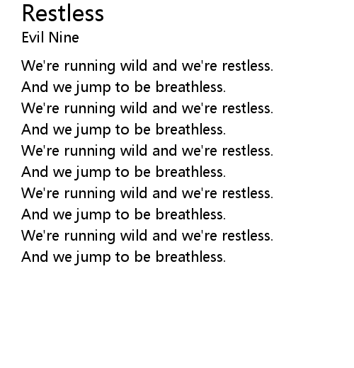 | We're running wild and we're restless. | |