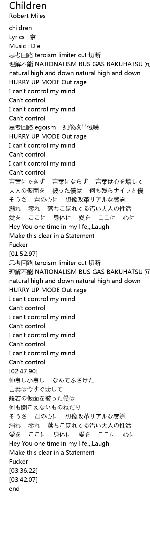 | [00:31.51] | 理解不能 NATIONALISM BUS GAS BAKUHATSU 冗談 |