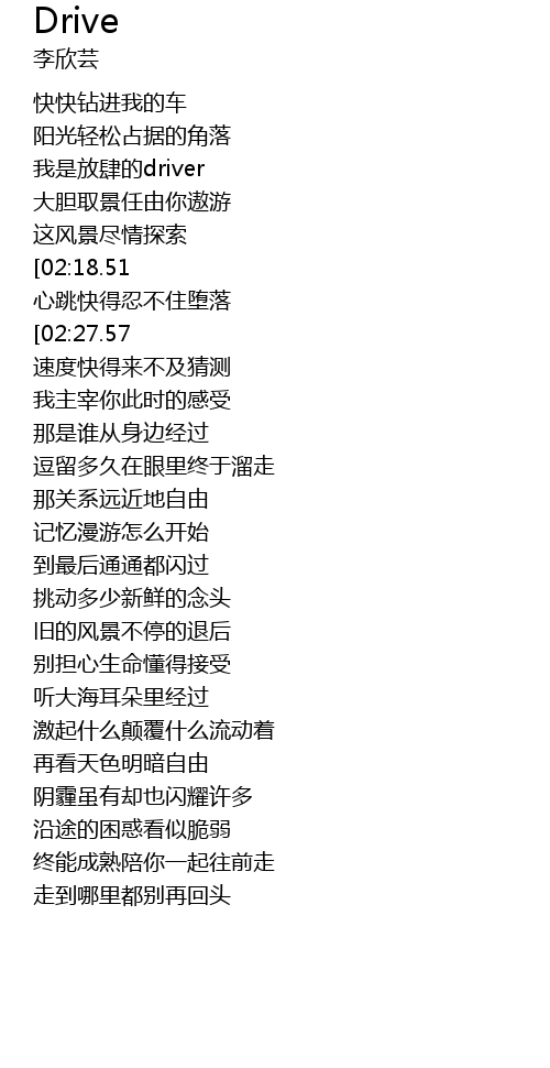 | [00:29.17] | wǒ shì fàng sì de driver |
