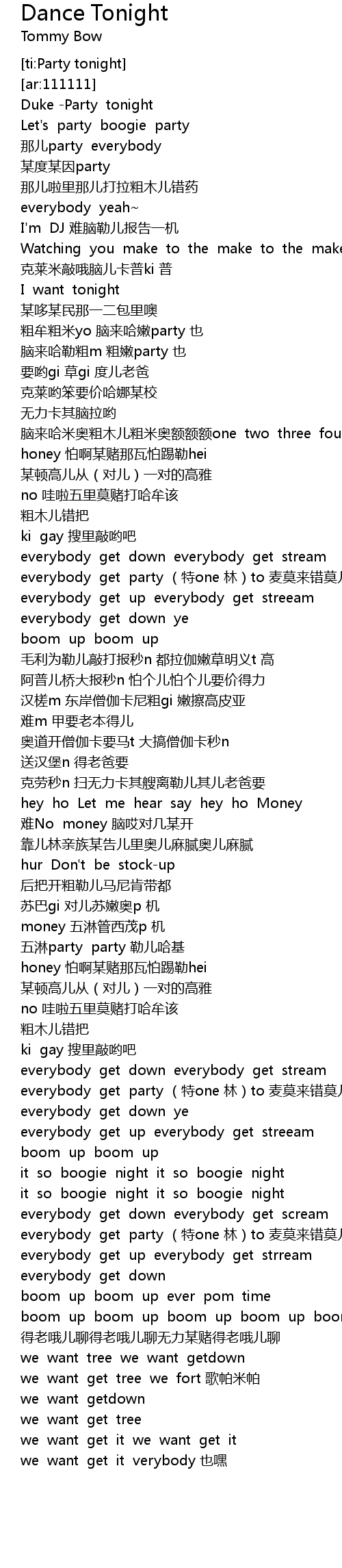 | [03:03.511] | everybody get party tè one lín to mài mò lái cuò mò ér cuò |