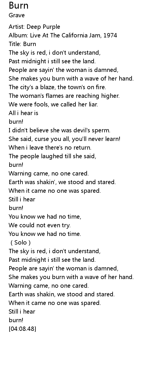 | [03:36.82] | She makes you burn with a wave of her hand. |