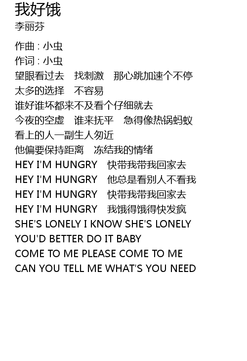| HEY I' M HUNGRY tā zǒng shì kàn bié rén bù kàn wǒ | |