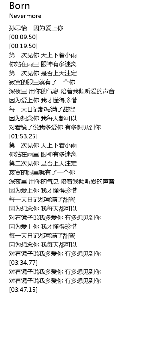 | [00:04.50] | 孙思怡 - 因为爱上你 |