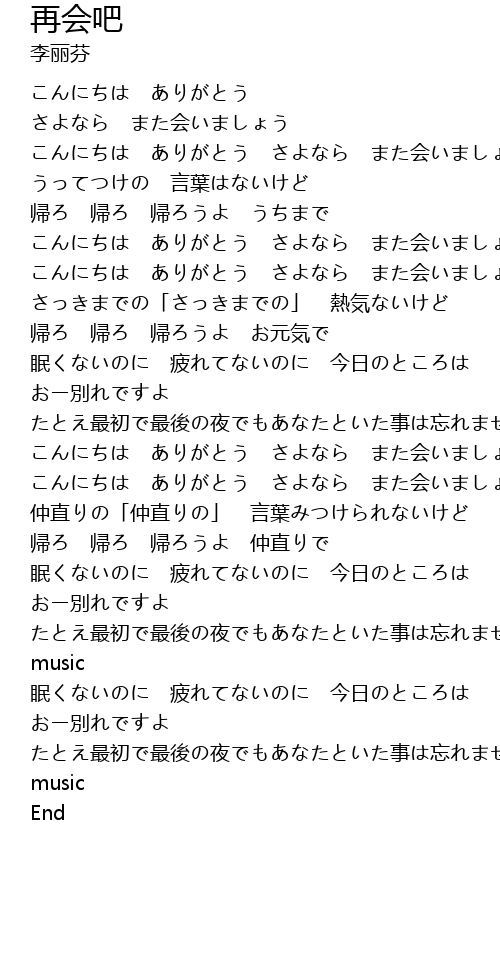 | [00:19.37] | こんにちは ありがとう さよなら また会いましょう |