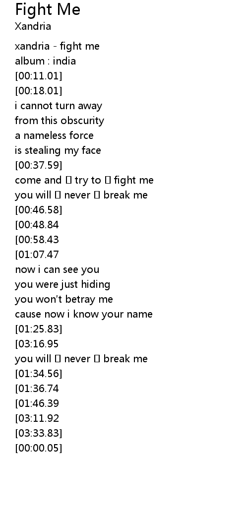 | [00:01.01] | xandria - fight me |