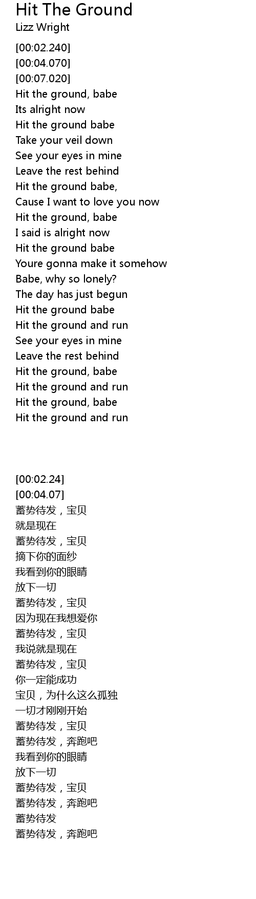 | [02:08.37] | 蓄势待发,奔跑吧 |