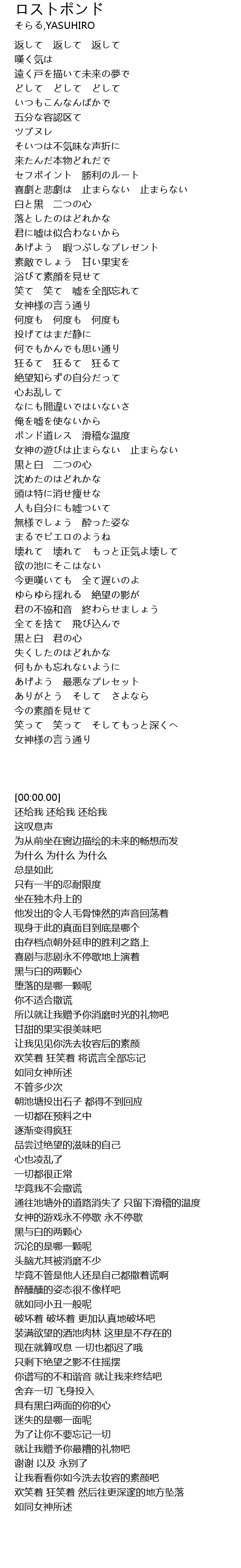 | [02:53.699] | 破坏着 破坏着 更加认真地破坏吧 |