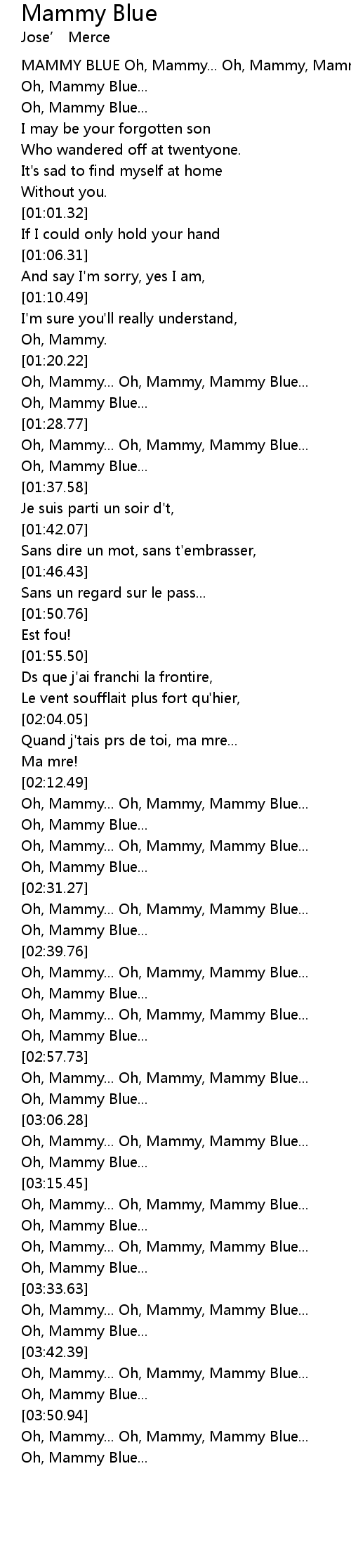 MAMMY BLUE Oh, Mammy... Oh, Mammy, Mammy Blue... |