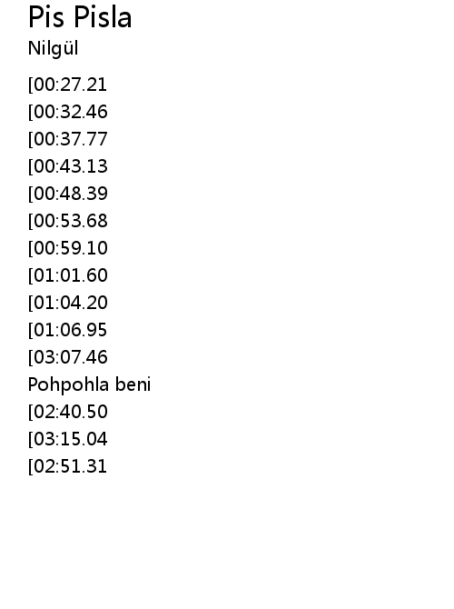 | [03:18.01][03:07.46][02:45.76][02:35.14][01:20.63][01:09.76] | Pispisla beni, Pohpohla beni |