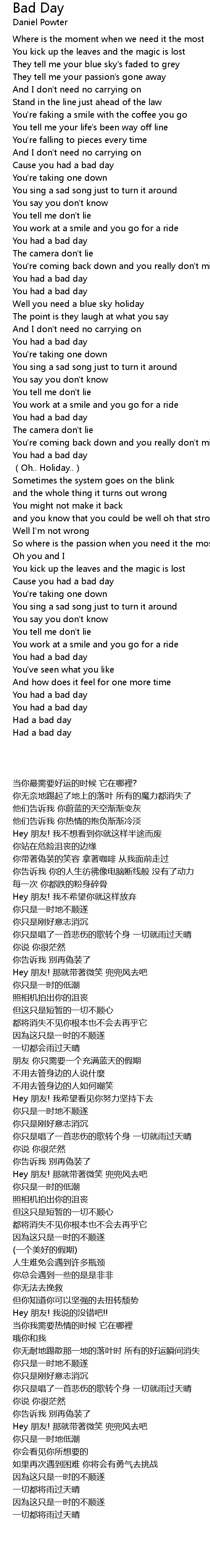 | 歌曲 | Bad Day |