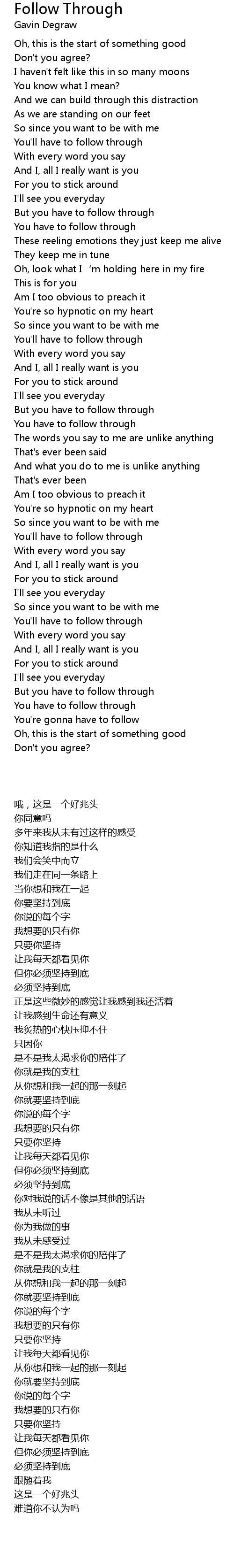 | 歌曲 | Follow Through |