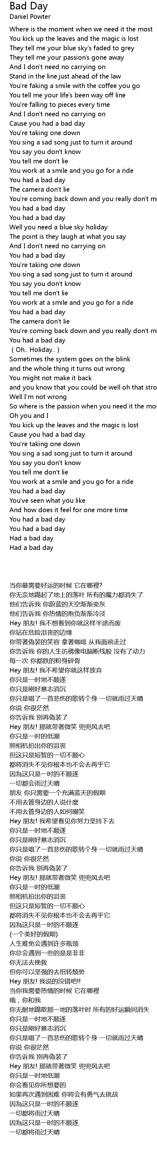 | [02:09.090] | 但这只是短暂的一切不顺心 都将消失不见你根本也不会去再乎它 |