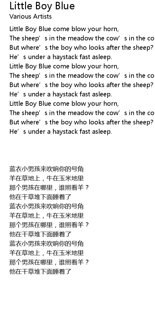 | [00:56.552] | Little Boy Blue come blow your horn, |