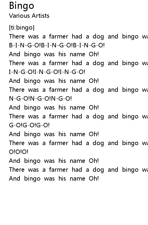 There was a farmer had a dog and bingo was his name OH! |