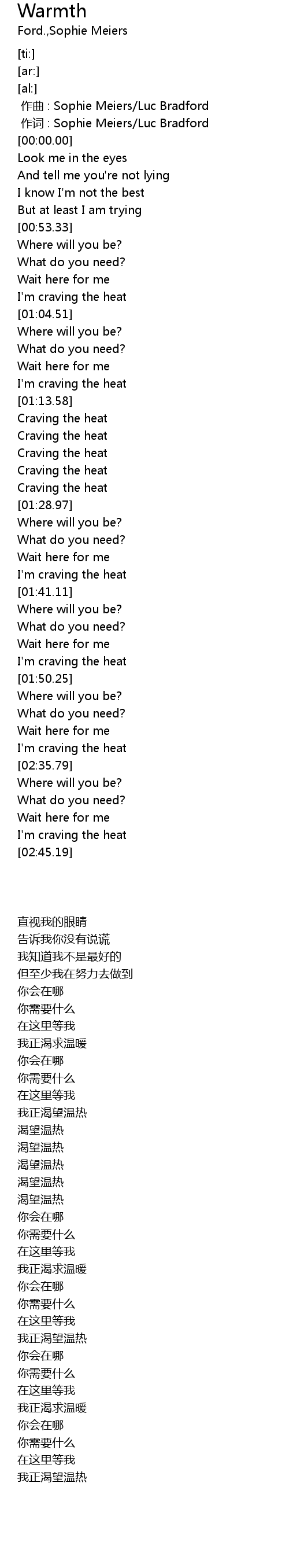 | [02:33.22] | 我正渴求温暖 |