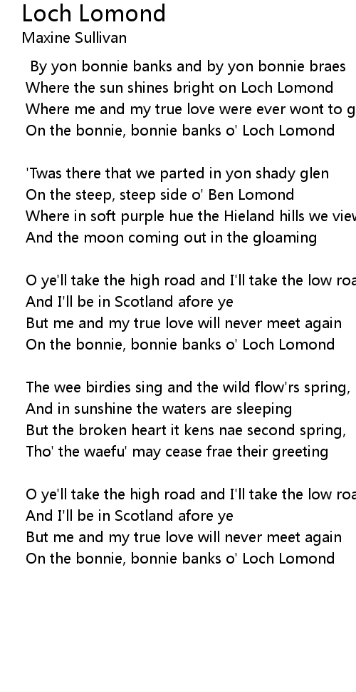 O ye'll take the high road and I'll take the low road |