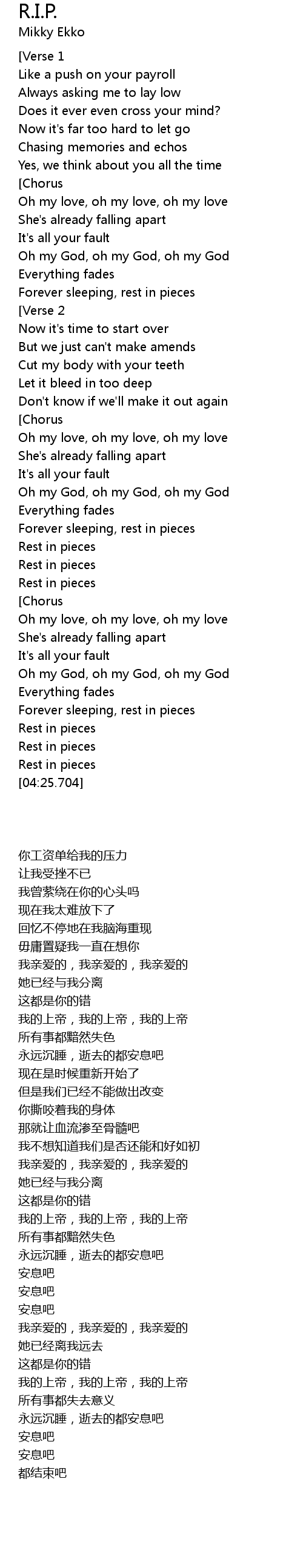 Forever sleeping, rest in pieces |