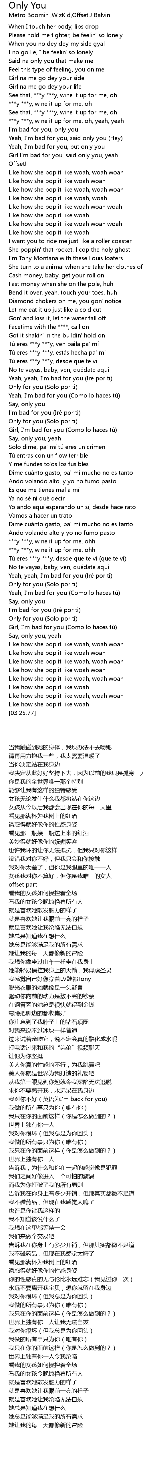| [00:36.95] | Yeah, I' m bad for you, said only you Hey |