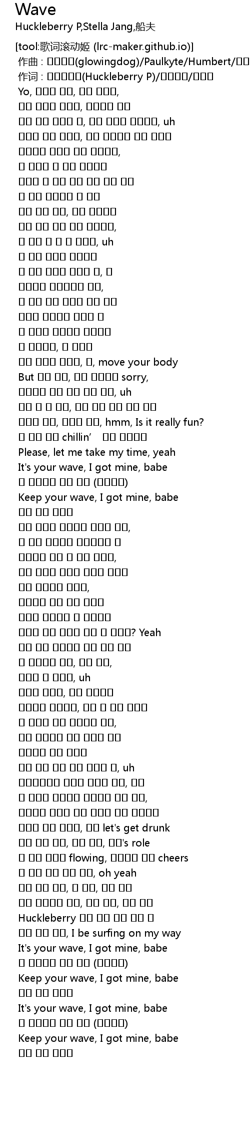 | [01:14.698] | It' s your wave, I got mine, babe |