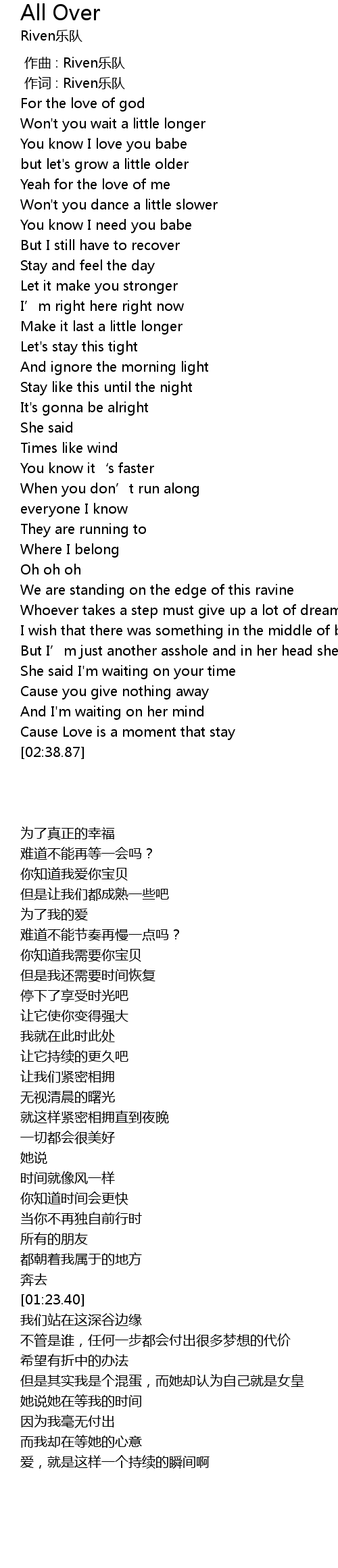 | [00:01.000] | 作词 : Riven乐队 |