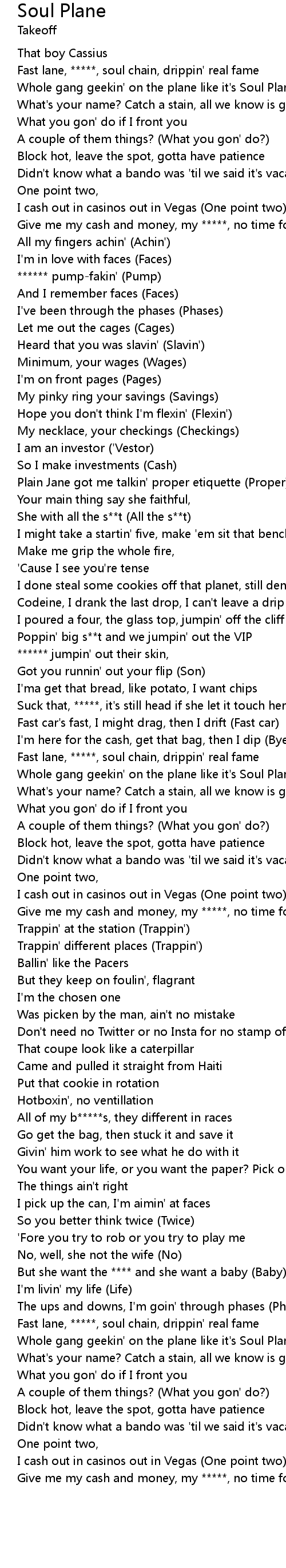 Fast lane, *****, soul chain, drippin' real fame |