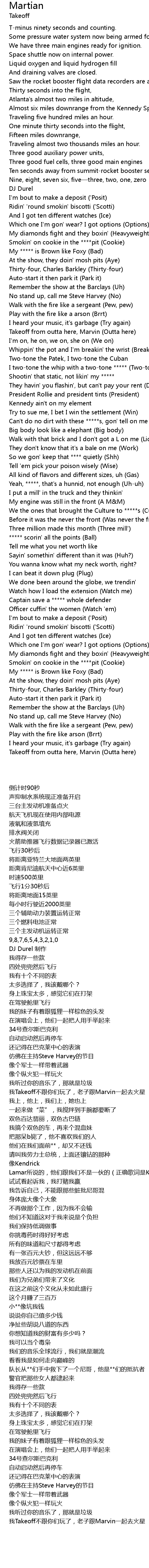 | [01:30.02] | 我Takeoff不跟你们玩了,老子跟Marvin一起去火星 |