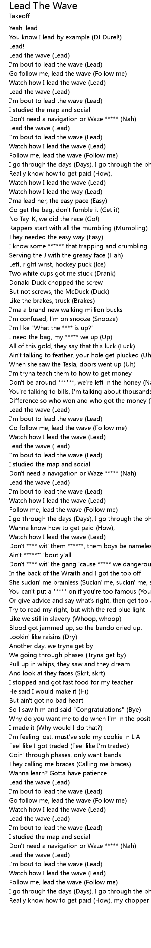 Really know how to get paid (How), my chopper lead the wave (Lead) |