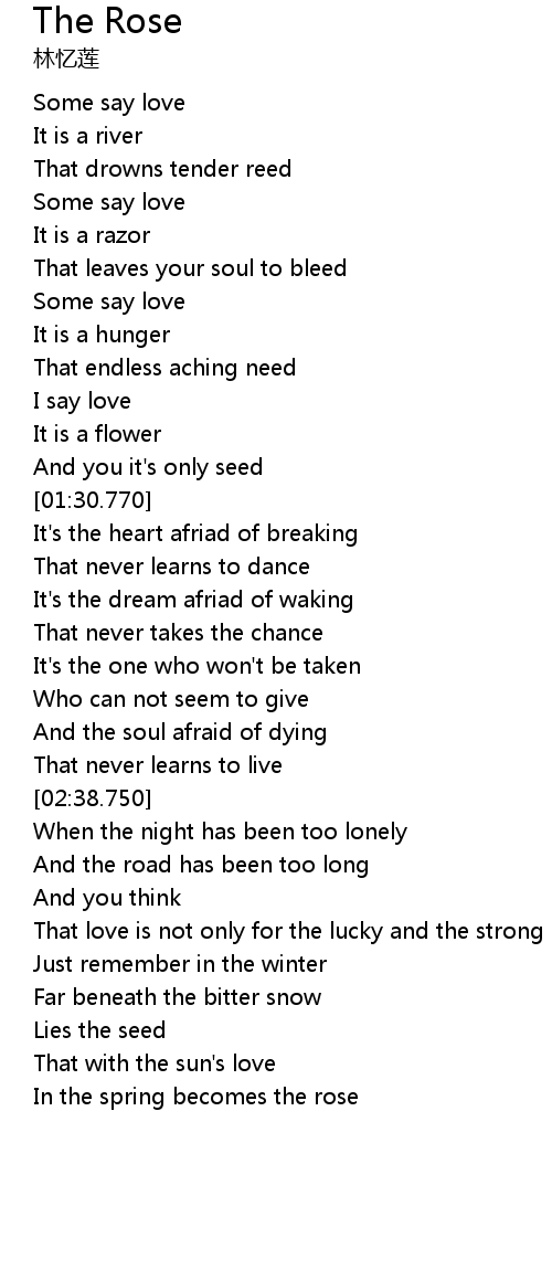 | [03:38.610] | In the spring becomes the rose |