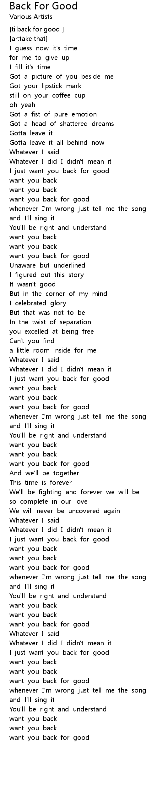 [ti:back for good ] |