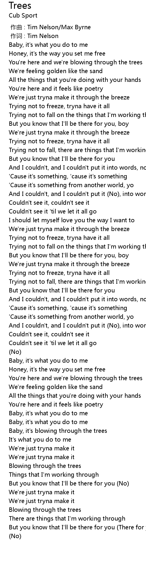 | [02:42.26] | Baby, it' s blowing through the trees |