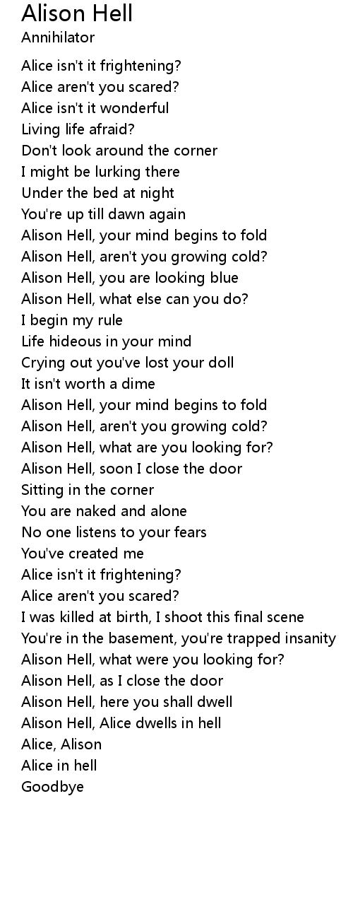 Alison Hell, Alice dwells in hell |